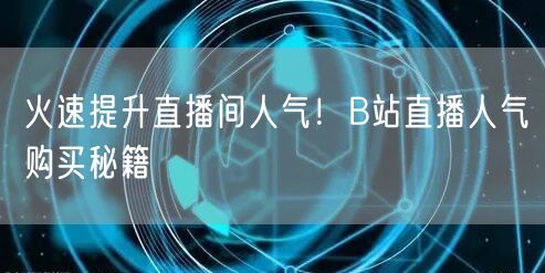 在B站直播中,如何快速提升直播间人气?这是许多主播们关注的焦点问题。本文将为你揭示一些直播人气购买的秘籍,帮助你轻松吸引更多观众,提升直播间热度。