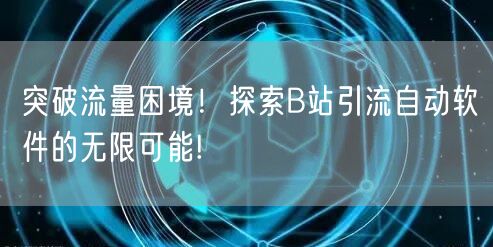 随着互联网的快速发展,内容平台竞争日益激烈,流量获取的难度越来越大。如何突破流量困境,成为摆在我们面前的一大挑战。本文将带你探索如何利用B站引流自动软件,挖掘内容营销的潜力,实现无限增长的可能性。