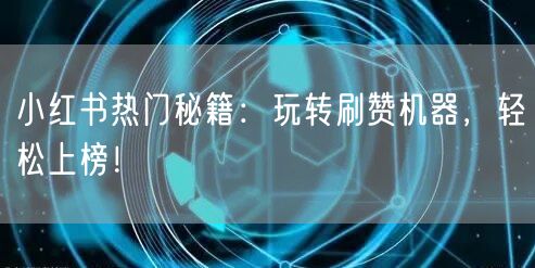 小红书作为一个热门的社交平台,吸引了众多用户分享自己的生活和发现。在这个平台上,如何让自己的内容脱颖而出,吸引更多关注和粉丝,成为每个用户都关注的问题。本文将为你揭示玩转小红书的秘籍,通过高效刷赞机器,轻松上榜!