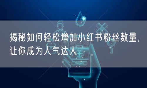 小红书作为一个新兴的社交媒体平台,已经成为众多用户分享生活、展示自我、互动交流的重要场所。在这个平台上,拥有众多粉丝意味着更大的影响力和话语权。那么,如何轻松增加小红书粉丝数量,成为人气达人呢?接下来,让我们一起揭秘这个秘密。
