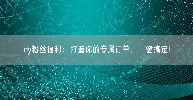 亲爱的粉丝们,快来参与我们的dy粉丝福利活动吧!打造您的专属订单,享受一键搞定的便捷服务。让我们共同创造更美好的互动体验!