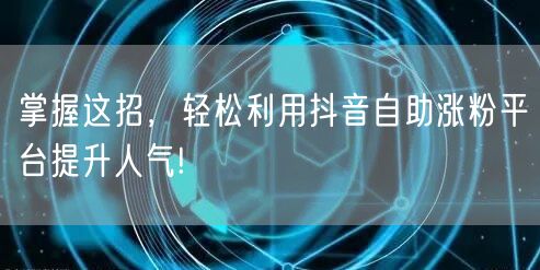 在如今的社交媒体时代,抖音已经成为了一个备受瞩目的平台,拥有巨大的用户群体和无限的商业潜力。对于希望在抖音上提升人气、扩大影响力的个人和企业来说,掌握有效的涨粉策略至关重要。本文将向你介绍一种轻松利用抖音自助涨粉平台提升人气的方法,帮助你轻松增加抖音粉丝数量和人气,提升个人品牌或业务的曝光。