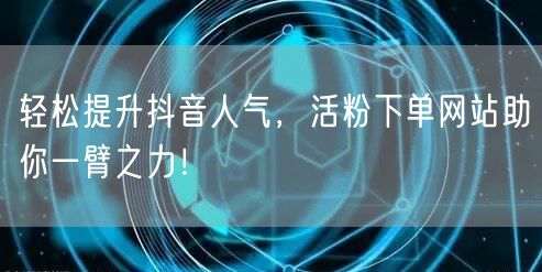轻松提升抖音人气,活粉下单网站助你一臂之力!