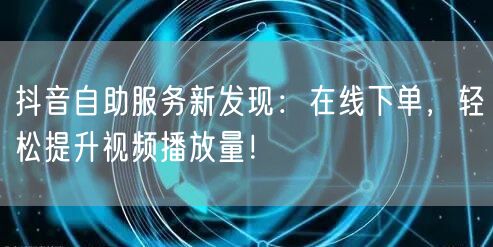 近期,抖音平台推出的自助服务新功能引起了广泛关注,其中最为亮眼的就是在线下单功能,不仅为用户提供了便捷的购买体验,还能有效助力视频播放量的提升。本文将为您详细介绍这一新发现,让您轻松掌握提升视频播放量的诀窍。