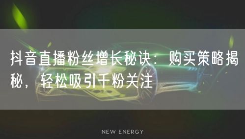 抖音直播已成为现代人娱乐和社交的重要平台,拥有众多粉丝的直播主在这里获得了巨大的关注和影响力。那么,如何快速增加抖音直播的粉丝数量呢?本文将为你揭秘粉丝增长秘诀,特别是购买策略,帮助你轻松吸引千粉关注。