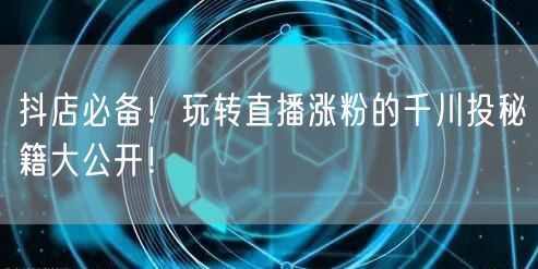 抖店必备!玩转直播涨粉的千川投秘籍大公开!