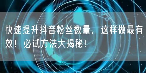 以上就是快速提升抖音粉丝数量的有效方法。通过精准定位、高质量内容创作、互动社交、合理利用标签和话题、定期更新和维持活跃度、合作推广以及注重数据分析与优化等方法,你可以轻松吸引更多粉丝关注你的账号。希望这些方法对你有所帮助!