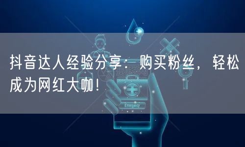 随着抖音平台的快速发展,越来越多的人希望通过分享自己的才艺、生活等内容,成为网红大咖。但如何在短时间内吸引大量粉丝关注,成为了一道难题。今天,我们就来分享一位抖音达人的经验,告诉你如何通过购买粉丝,轻松成为网红大咖!