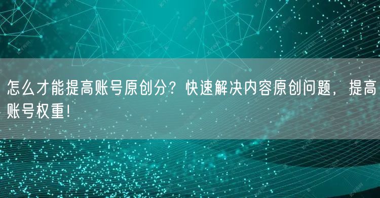 在当今互联网内容丰富的时代,提高账号原创分、解决内容原创问题、提升账号权重是每一个内容创作者必须面对的挑战。这不仅关系到内容的曝光率,更直接影响到创作者的收益和影响力。那么,怎样才能快速解决这些问题,提高账号权重呢?接下来,我们将为您详细解析。