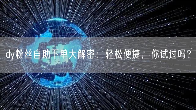 dy粉丝自助下单大解密:轻松便捷,你试过吗?