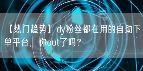 1. 紧跟潮流:Dy粉丝追求时尚、潮流,自助下单平台符合他们的消费需求。