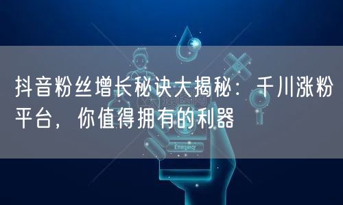 随着抖音平台的快速发展,越来越多的人开始关注抖音粉丝增长,希望通过这一平台扩大自己的影响力。本文将为你揭示抖音粉丝增长的秘诀,并介绍一款值得拥有的利器——千川涨粉平台。