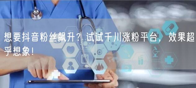 你是否在寻找一种能让你的抖音账号粉丝数量飙升的秘诀?是否在寻找一种能够快速增加流量和提升人气的方法?那么,你绝对不能错过千川涨粉平台!这是一个专注于帮助用户实现抖音粉丝数量快速增长的平台。