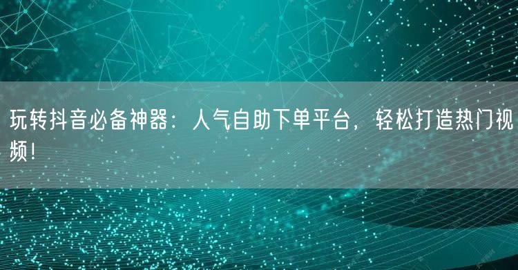 随着互联网的迅猛发展,抖音已成为了人们生活中不可或缺的娱乐社交平台。如何在众多用户中脱颖而出,打造热门视频,成为每个抖音用户关注的焦点。今天,我们要揭秘一个玩转抖音的必备神器——人气自助下单平台,助你轻松实现热门视频的打造。
