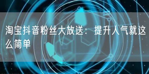 在这个数字化时代,社交媒体已成为人们生活中不可或缺的一部分。淘宝和抖音作为两大巨头,吸引了亿万用户的目光。你是否也想过在这里开启自己的商业旅程,却因为人气不高而苦恼?今天,就让我来告诉你一个轻松提升人气的秘诀——淘宝抖音粉丝大放送。