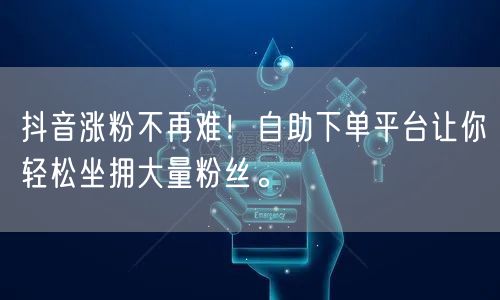 抖音涨粉不再难!通过自助下单平台,轻松实现抖音粉丝数量的增长,提升个人影响力。在这个社交娱乐平台上,让我们轻松坐拥大量粉丝,共同创造更美好的未来。