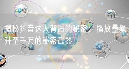 每一个成功的抖音达人背后都有一段辛勤付出的历程。在抖音上,想要获得高播放量,不仅需要优质内容,还需要掌握一定的推广策略。那么,这些秘密武器究竟是什么呢?