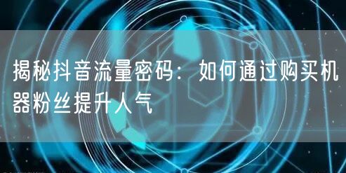 抖音作为当下最热门的社交媒体平台之一,吸引了众多用户和商家的目光。如何在这个竞争激烈的平台上脱颖而出,成为每个用户关注的焦点。本文将揭秘抖音流量密码,探讨如何通过购买机器粉丝提升人气。