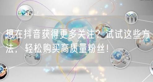 想要在抖音上获得更多的关注并提升营销效果,除了优化个人资料、发布优质内容和积极互动外,购买高质量粉丝也是一种有效的手段。通过选择正规渠道、精准定位目标群体、多元化推广策略以及维护良好关系,你可以在抖音上轻松增加高质量粉丝,提升营销效果。