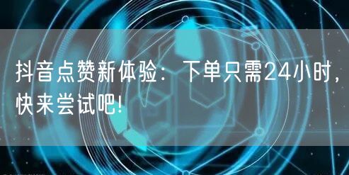 如果您想要在抖音上获得更多的关注和认可,不妨尝试一下这种全新的点赞体验。下单只需24小时,让您的抖音之旅更加顺畅,更加精彩!