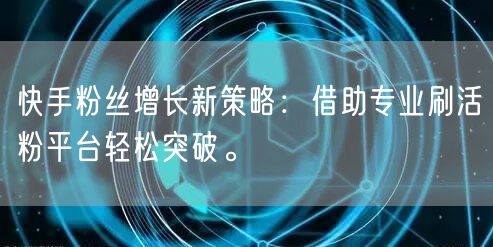 本文介绍了一种全新的快手粉丝增长策略——借助专业刷活粉平台轻松突破。通过选择正规、信誉良好的专业刷活粉平台,用户可以快速、安全地增加快手粉丝数量,提高自身的影响力和曝光率。同时,用户还需要积极参与互动,提高与粉丝之间的黏性和互动率。希望本文能够帮助广大快手用户实现粉丝数量的快速增长。