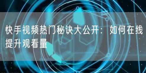 通过深入研究快手平台特性,优化视频创作和推广策略,结合数据分析进行调整,可以有效提升视频的观看量。希望本文的秘诀能助你在快手平台上脱颖而出。