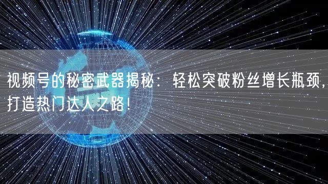 视频号的秘密武器揭秘:轻松突破粉丝增长瓶颈,打造热门达人之路!