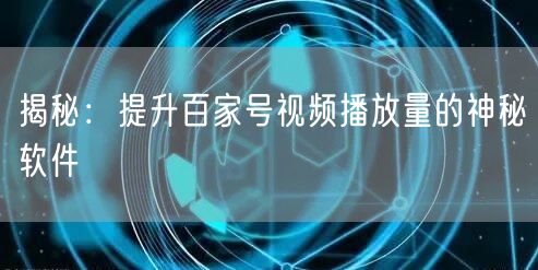 随着互联网的普及,百家号视频已成为大众获取信息的重要途径之一。然而,如何提升百家号视频播放量,让更多人观看自己的视频内容,成为了众多创作者关注的焦点。今天,我们将揭秘一款神秘软件,它能帮助你轻松提升百家号视频播放量。