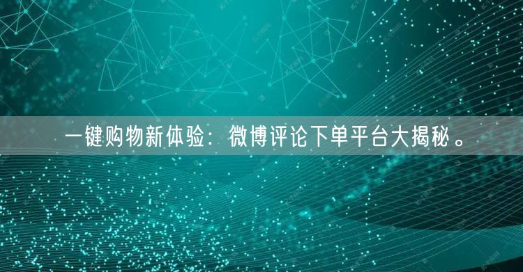 以上是本文关于一键购物新体验:微博评论下单平台大揭秘的内容。希望通过本文的介绍,能让更多消费者了解这一新兴购物模式,体验快捷购物的魅力。